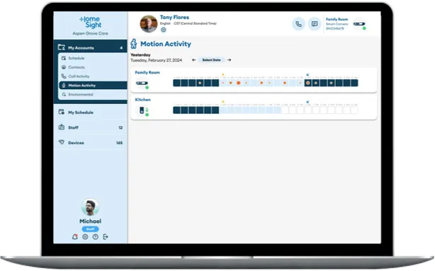 HomeSight® can integrate with compatible health devices like blood pressure monitors or glucose meters, giving the Caring Companions care team helpful insights to support proactive care.